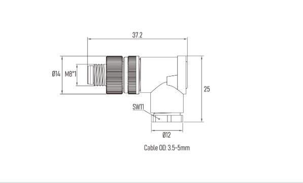 M8 3Pin male right angled connector, field wirable, screw termination