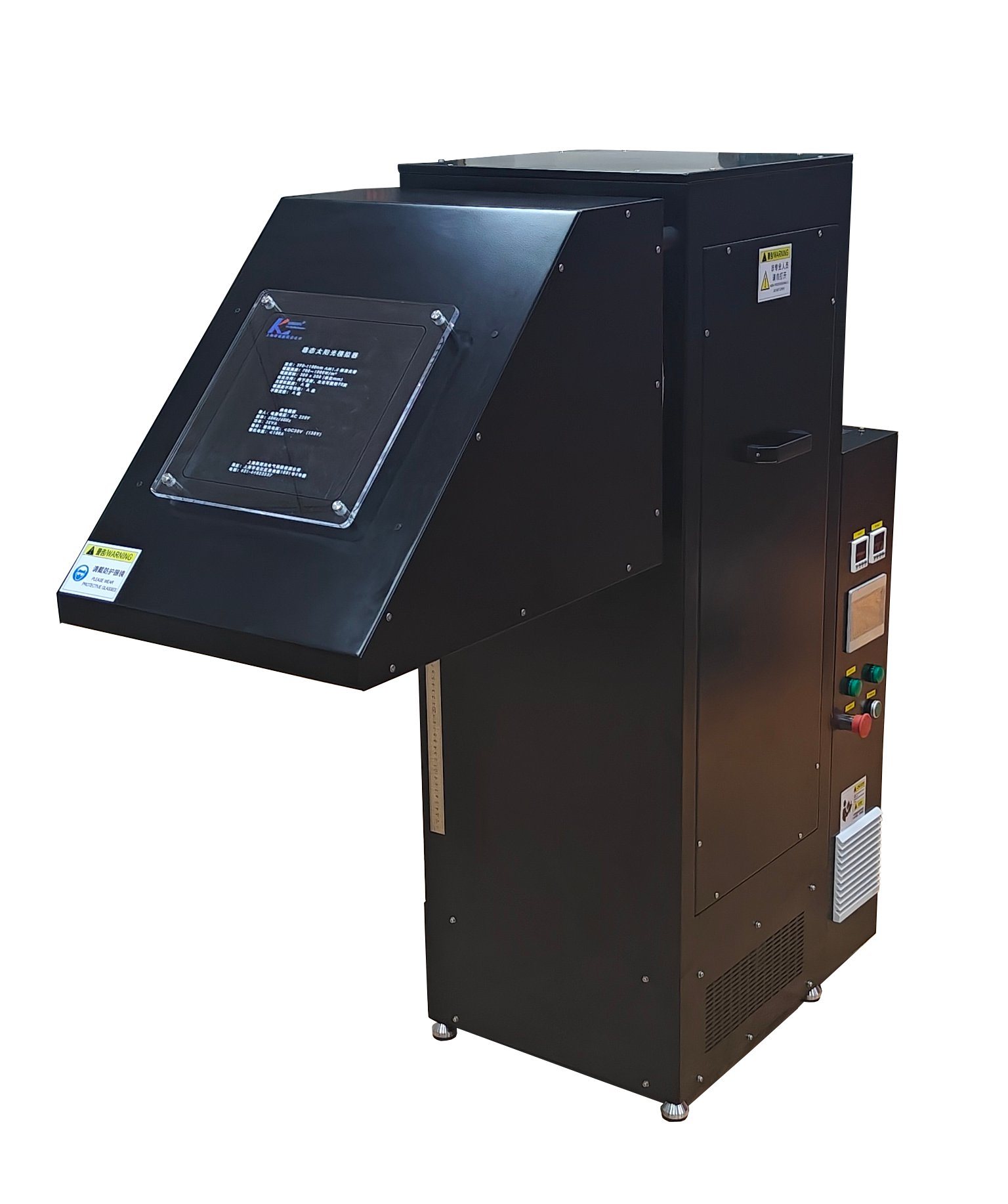 Solar simulator, the light source equipment which is independent researched & produced by Shanghai Co-fly electronics Co.,Ltd.The equipment is included central control machine,matlab software and data acquisition system.We can customize the equipment as your actual request with reliable quality,fast delivery&24 hours after-sales service.Solar simulator can be provided the environment close to natural light which is not affected by environment,climate & time,it can realize 24 hours uninterrupted light source and weathering test for a short time.In addition,the equipment can be fulfilled the requirement of the maximum power of IC 61215-2:2021,hot spot durability test of IEC 63126:2020 &stability test of IEC 61853-2:2016.Solar simulator can be widely used in the test of solar battery,dye-sensitized cell,perovskite battery,photothermal conversion,photoelectric material,biochemistry,photocatalytic degradation,skin cosmetics,aerospace,scientific research unit,automotive full-spectrum sunlight simulation system,etc.The product can be met the standard of IEC 60904-9,ASTM E 927 A-level spectral matching,class A or B irradiance spatial inhomogeneity,Class A Temporal Instability.Main techical parameter:1,Output the sunlight:700-1300Wm2 continuously adjustable.2,Direction of light:vertically up/down,horizontal left/right.3,Radiation area: 100mm*100mm-2600mm*2800mm4,Internationl standard for light matching/Irradiance Spatial Uniformity/temporal instability: JIS C 8912,ASTM E927-05,IEC 60904-9 2007 ED25,Collimation angle: Less than or equal to 2.5 degrees half angle6,Averaging technique:Double fly eye lens combination7,Lamp life: Average 2000 hours8,Shutter control time:0.1S-9990 Hours.9,Security lock:When the light source box cover is opened, the light source will be automatically turn off.10,Temperature sensor and self-locking system ensure the operator's safety.11,Fan power-off delay function,equipment cooling system delay power-off system,no need to stay manually,save time at work&improve equipment's life.Product Features:1,High stablity,durability,Ozone-free lamp.2,Excellent light distribution,uniformity & stability.3,Solid body,easy to operate & install.4,light matching,Irradiation unevenness,Irradiation time instability can be customized as your request.5,Can be measured 6 parameters:Voc,Isc,FF,Imax,Vmax,Pmax,Rs,RshProcess flow:Product design--Drawing approval--Purchasing parts--Material inspection--Equipment assembly--Technical debugging--Performance correction--QC test--Aging test--Appearance QC-Package